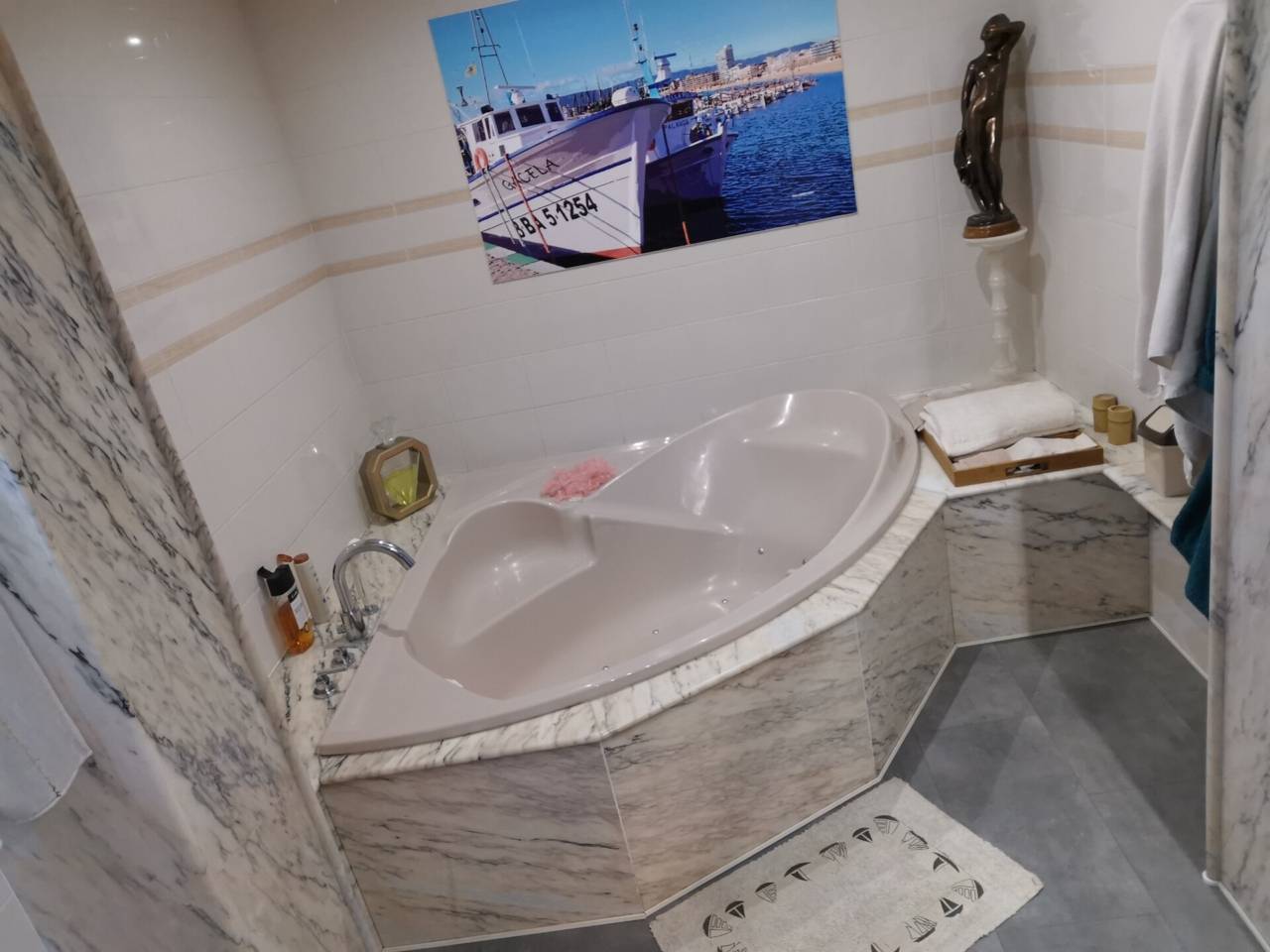 Pero lo más especial nos espera en el exterior: un jardín de 390 m² rodea la casa, con varias terrazas cubiertas y descubiertas para disfrutar de cada momento del día. La gran protagonista es la piscina de agua salada de 9×5 m, con su suelo de terraza flotante que invita a relajarse al sol.